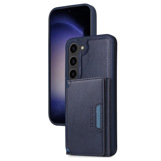 For Samsung Galaxy S23 5G 3 in 1 Rugged Holder Phone Case(Dark Blue+Sapphire Blue)
