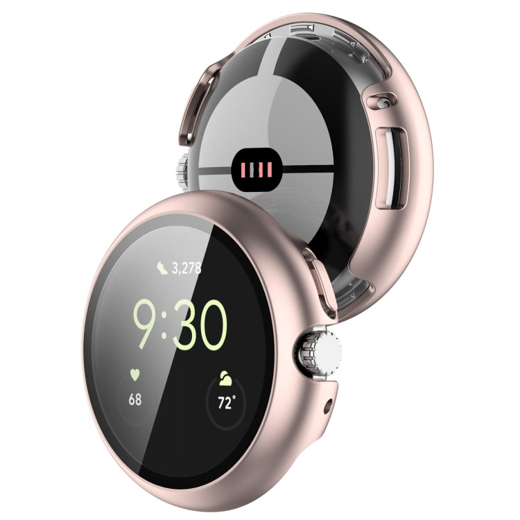 For Google Pixel Watch Tempered Glass Film PC Watch Case(Rose Gold)