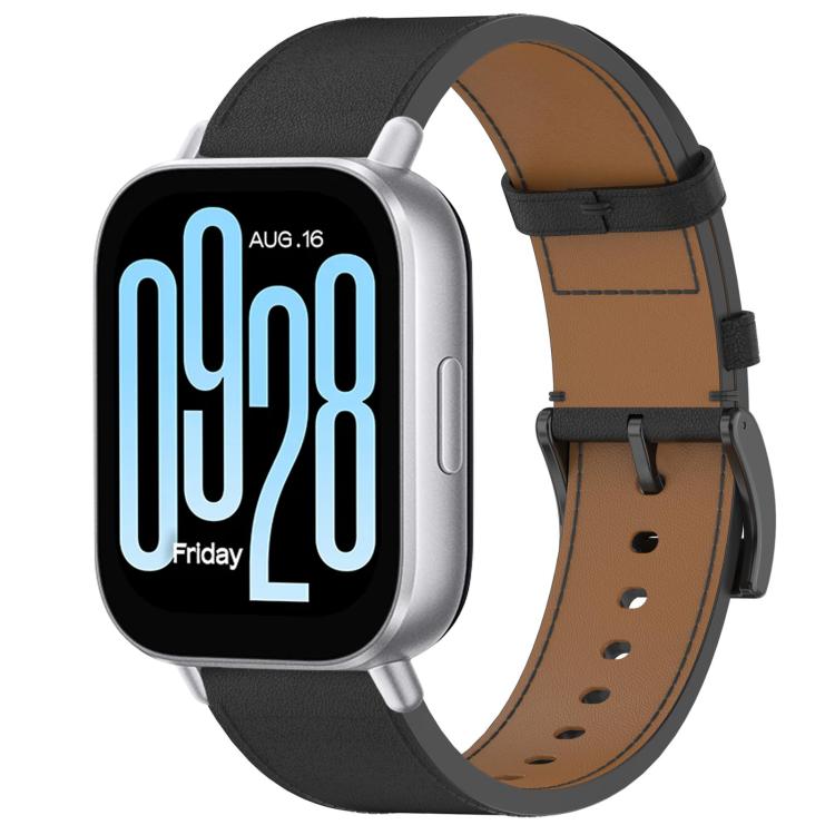 For Redmi Watch 5 Active / Watch 5 Lite Press Button 22mm Leather Watch Band(Black)
